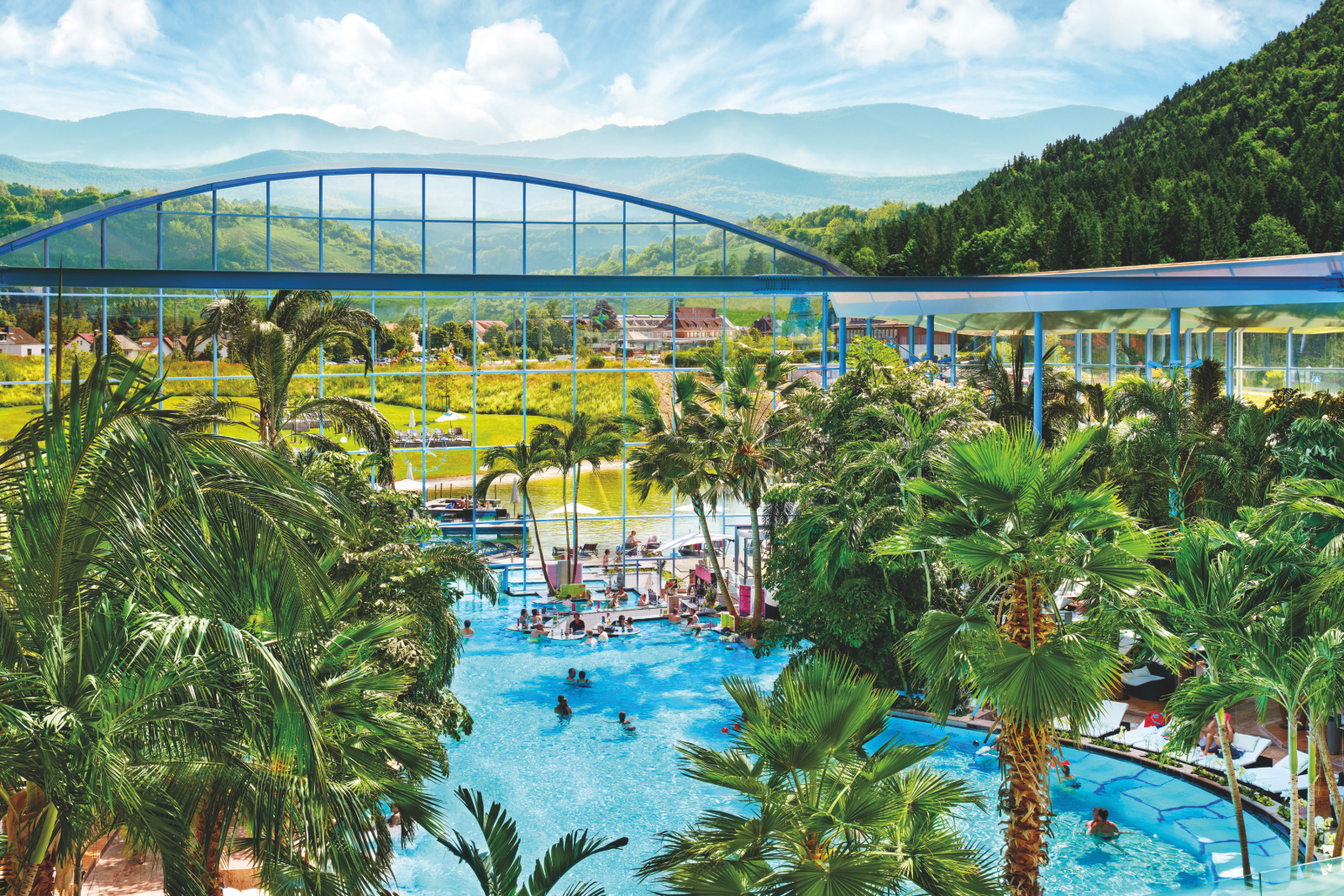 Das Badeparadies Schwarzwald in Titisee-Neustadt bietet Erholung, Wellness und Action unter einem Dach. 🌴 Im Bereich Palmenoase sorgen echte Südsee-Palmen, warmes Wasser und entspannte Wellnessangebote für echtes Urlaubsgefühl. 🧖♀️ In der textilfreien Spa- und Saunawelt Palais Vital erwarten Gäste verschiedene Themensaunen, Vitalpools und ruhige Rückzugsorte zum Entspannen. 💦 Für Familien und Abenteuerlustige bietet die Galaxy-Rutschenwelt mit zahlreichen spektakulären Rutschen jede Menge Spaß und Adrenalin. 🎢